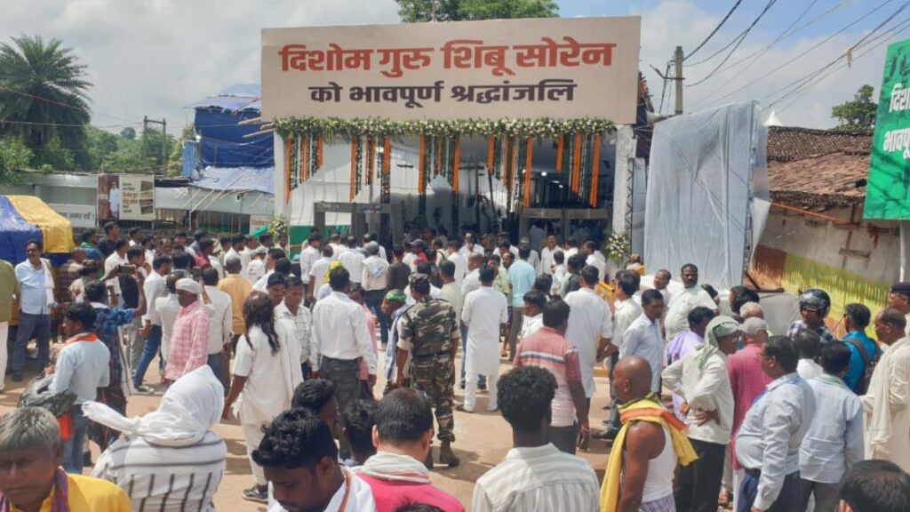 Shibu Soren ke Dashakarm Bhoj Nemra sanskar ke liye Nemra me logon ki bheed lag gayi hai. Ek dozen se